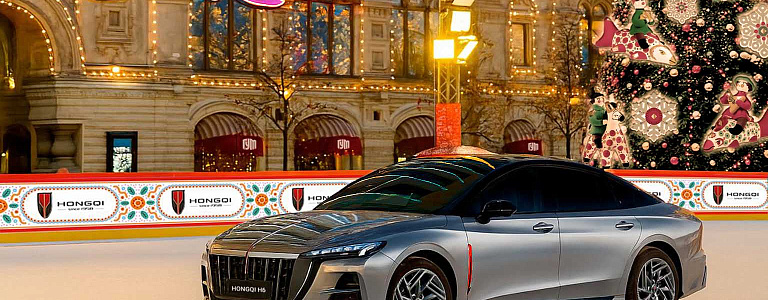 Красное Знамя покоряет ГУМ-каток: китайский спортбэк HONGQI H6 удивит Москву 2025-2026
