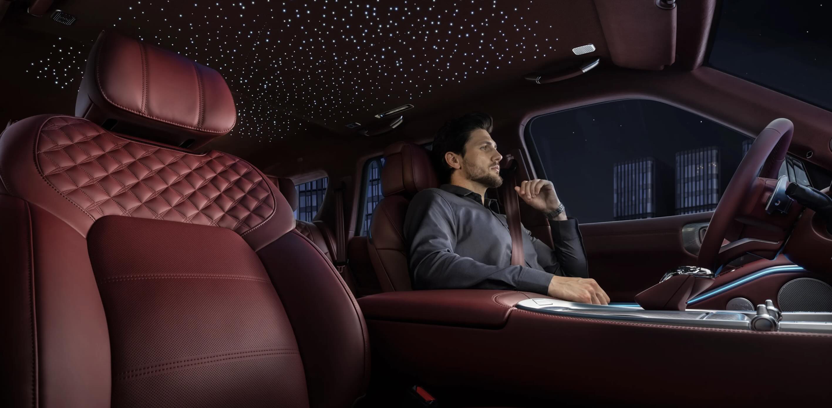 В отделке интерьера Tank 700 китайцы использовали любимый визуальный ход Rolls-Royse. Это потолок в стиле «звездного неба» вместо люка. Опять же такая эффектная люксовая опция появляется в самой дорогой версии Edition One.