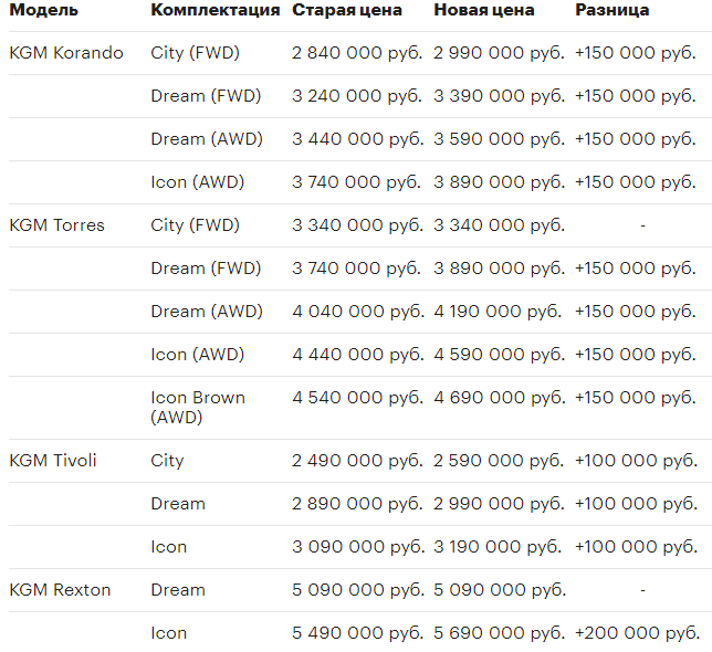 Корейский KGM: выгода тает, цены растут