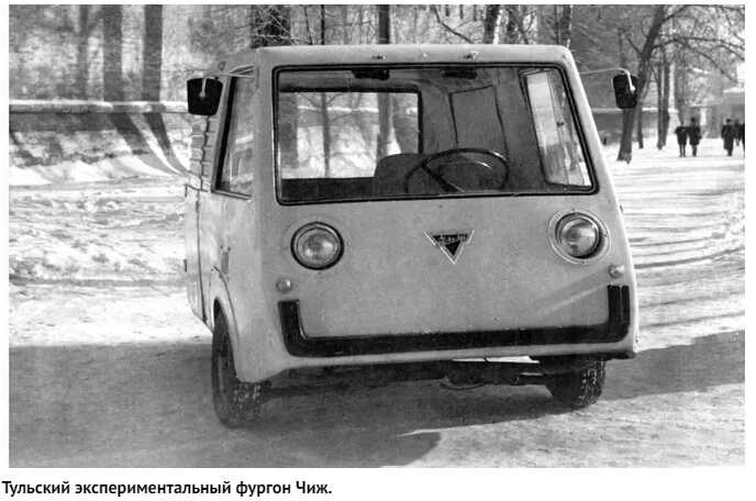 Начнём с Тульского завода, где в 1959 году стартовал выпуск трёхколёсных мотороллеров "Муравей". Эти крохи перевозили мелкие грузы, но инженеры захотели эволюции. Они превратили "Муравья" в четырёхколёсный фургон "Чиж" — длиной всего 3,2 м, с базой 1,9 м. Мотор — двухтактный, 0,25 литра, 18 "лошадей" — стоял справа от водителя и крутил передние колёса.Колёса, шины и многие узлы взяли прямо от мотороллера. Заднюю колею сделали узкой (0,4 м), переднюю шире (1,2 м), что напоминало немецкий BMW Isetta. Вероятно, такая схема помогала классифицировать авто как "мотоколяску", избегая строгих требований к авто — например, по безопасности и свету. Хотя определения класса чёткого не существовало, даже Серпуховский завод с авто для инвалидов сталкивался с проблемами от НАМИ.