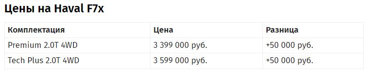Купе-кроссовер F7x с полным приводом, дебютировавший весной этого года, тоже не избежал повышения на 50 тысяч. Его сердце — безальтернативный 2-литровый турбомотор на 192 силы, имеет роботизированную коробку, полный привод и интеллектуальные режимы для разных покрытий, включая снег и бездорожье.