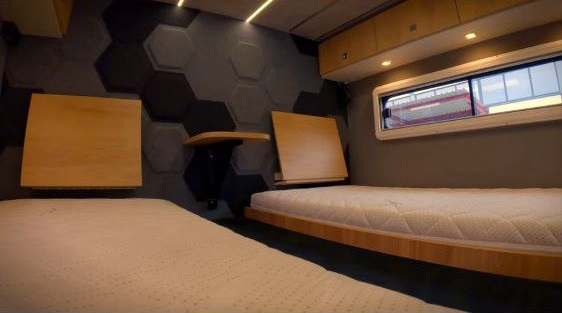 - Два отдельных спальных места с персональной подсветкой и длиной почти 2 метра каждое.