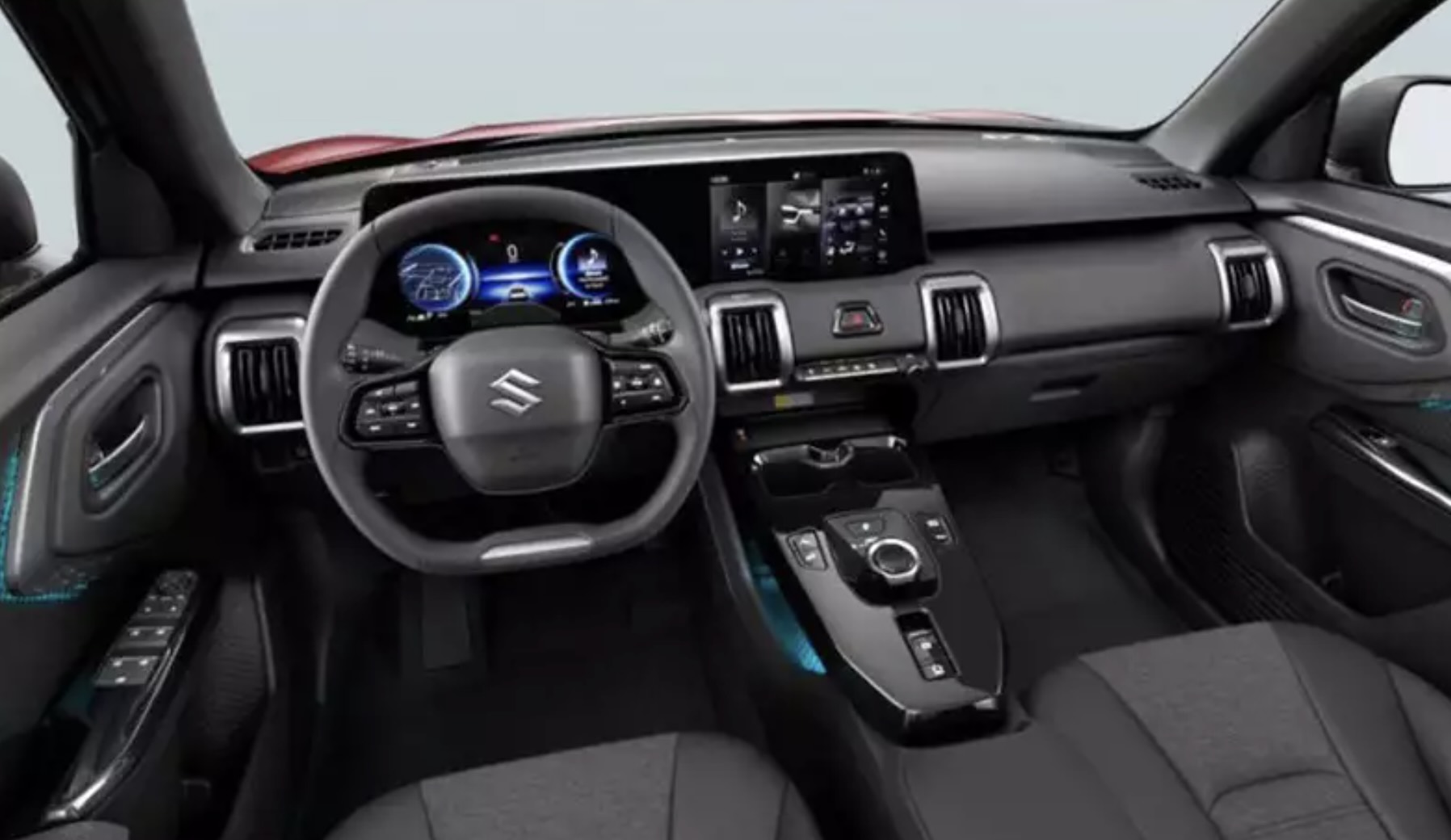 По части дизайна товарный E-Vitara немало позаимствовал у концепта EVX, при этом электрокар сохранил узнаваемый облик оригинальной Vitara. В салоне нового кроссовера расположился широкий цифровой кластер, который объединил приборку на 10,25 дюйма и 10,1-дюймовую мультимедиа. Последняя уже в базовой версии поддерживает Apple CarPlay и Android Auto. В максимальных комплектациях появляются стеклянная крыша и беспроводная зарядка.