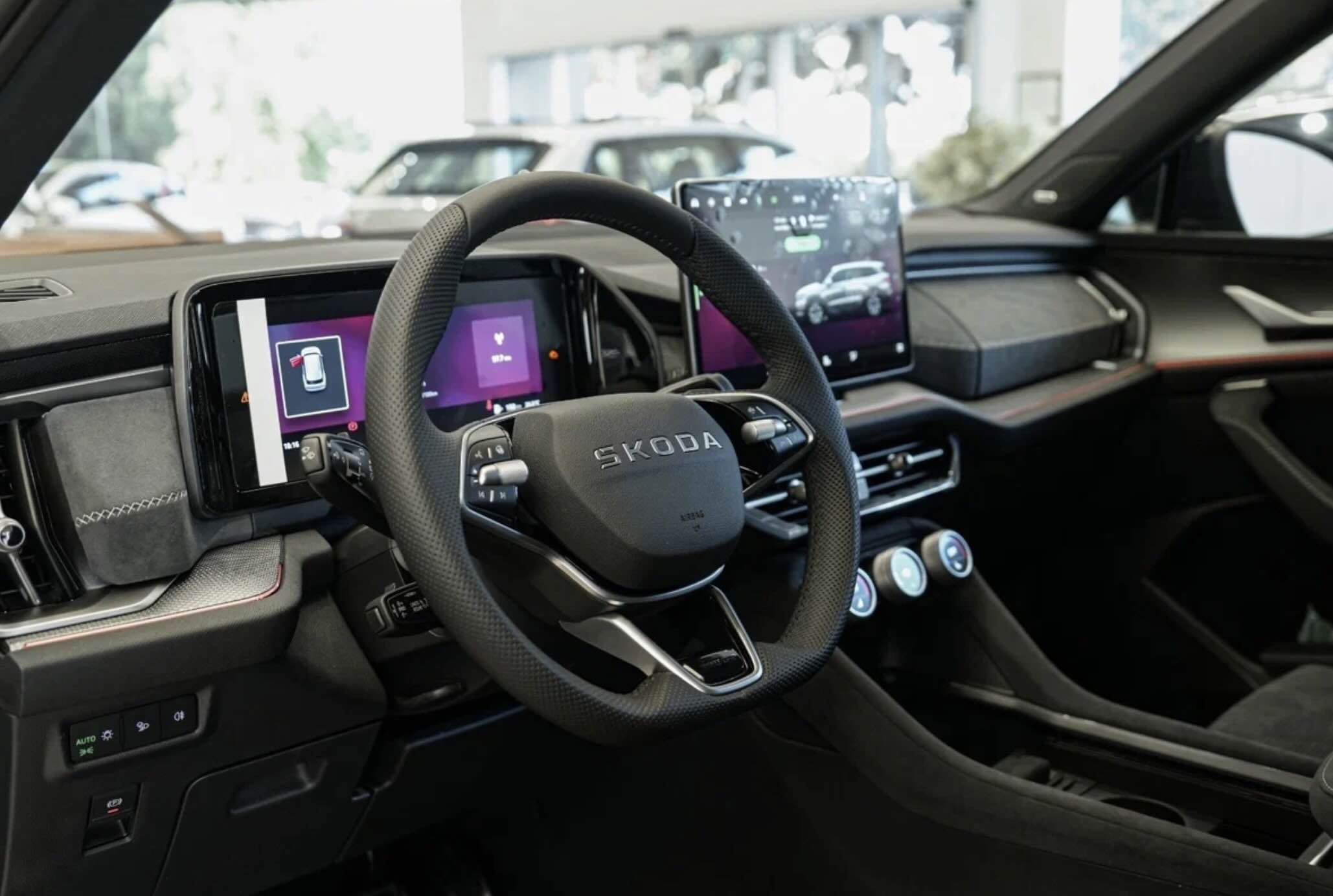 Чаще всего в Россию возят Skoda Kodiaq в версии Selection Plus. В арсенале таких кроссоверов заявлены оптика на светодиодах, датчики дождя и света, беспроводная зарядка, голосовое управление, диски на 19 дюймов, парктроники, цифровая приборка, многозонный климат-контроль, проекционный дисплей, камера кругового обзора, экокожа в салоне, кресла с функцией массажа и многое другое. Обогреваются наружные зеркала, все кресла и руль.