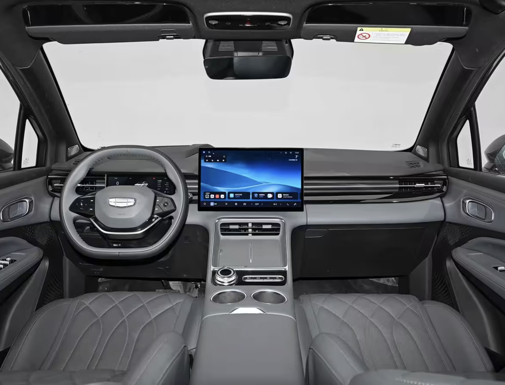 Снимками новинки делится китайский автопортал Autohome.cn. Салон гибридного кросс-купе оформлен в духе актуальных моделей Geely. Можно найти немало параллелей с кроссовером Geely EX5. Кроссовер получает мультимедиа с большим тачскрином горизонтальной ориентации, беспроводную зарядку для гаджетов, аудиосистему Flyme Sound и кресла с декоративной прострочкой.